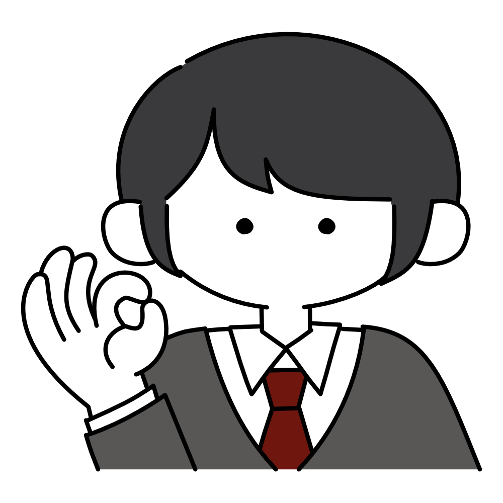 ビジネスで使いやすいシンプルなタッチのOKサインをしている男性のフリーイラストです。