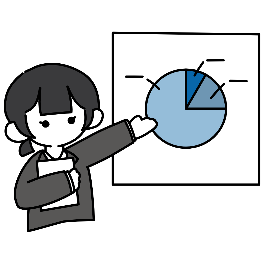 シンプルで使いやすいパワーポイントを使っている女性のフリーイラストです。 WEBサイト、資料、チラシなどにご利用いただけます。