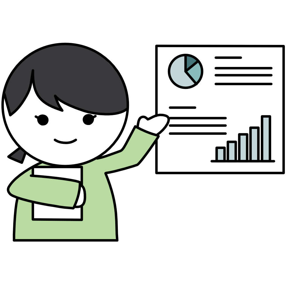 シンプルで使いやすいパワーポイントを使っている女性のフリーイラストです。 WEBサイト、資料、チラシなどにご利用いただけます。